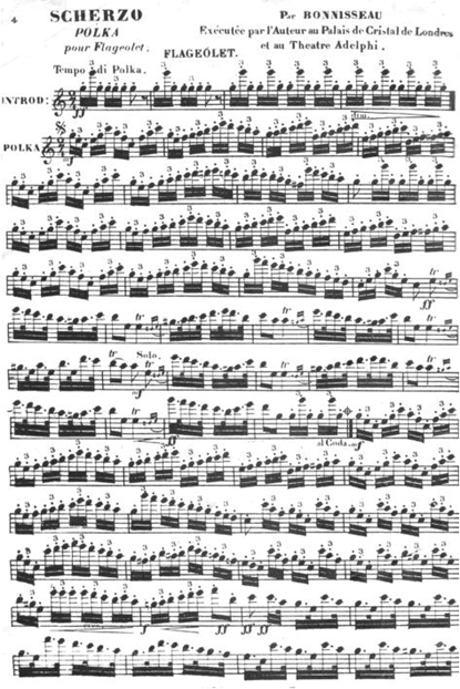 A4. Another phrase which contain dotted rhythm in triple time but generally the pitch moves down. This phrase moves as a lively dance and usually appear at climaxes and soft at the quieter parts (Example 4).