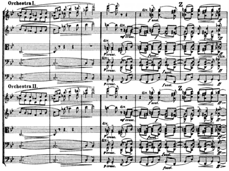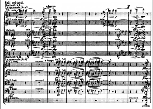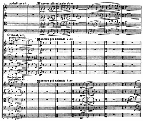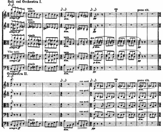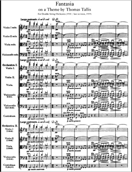 While Tallis`s composition written for voices, Vaughan Williams scored for an extended string orchestra which divided into three groups. Orchestra I, Orchestra II (smaller group), and a string quartet.