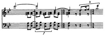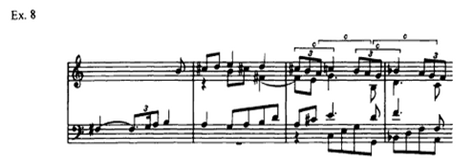 In the fourth episode (transition) the “sway” subject starts again but this time the composer mainly uses two notes (Example 9).