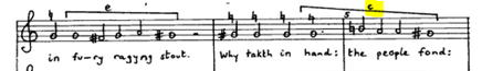 Vaughan Williams builds on the semitonal relationship between C♮ and C# and extend it by using phrase C (Example 18) from Tallis`s tune in a retrograde inversion (Example 19).